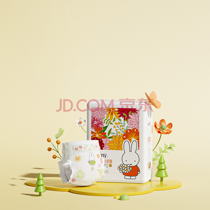 商品相册:solove米菲小花园2.0尿不湿XL码36片(12-17kg)全包臀透气抑菌纸尿裤单包第