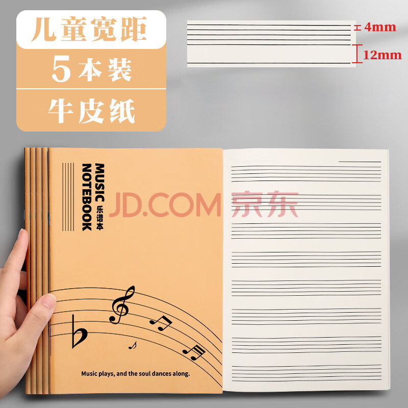 商品相册:金值 五本装牛皮纸封面五线谱本 40页大间距乐谱本子钢琴吉他练琴音乐笔记本儿童初学者宽距琴谱本第