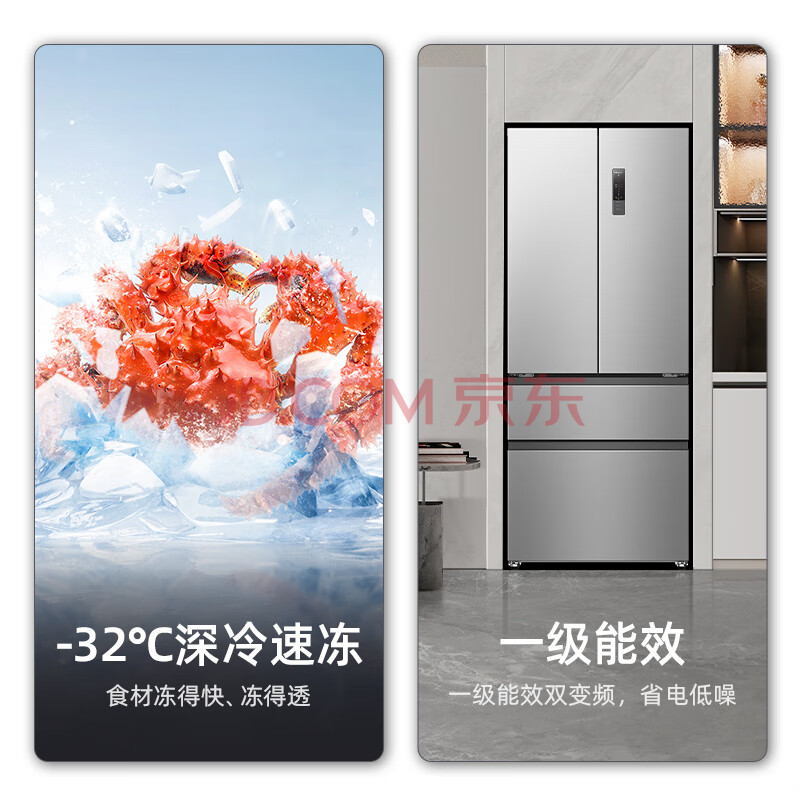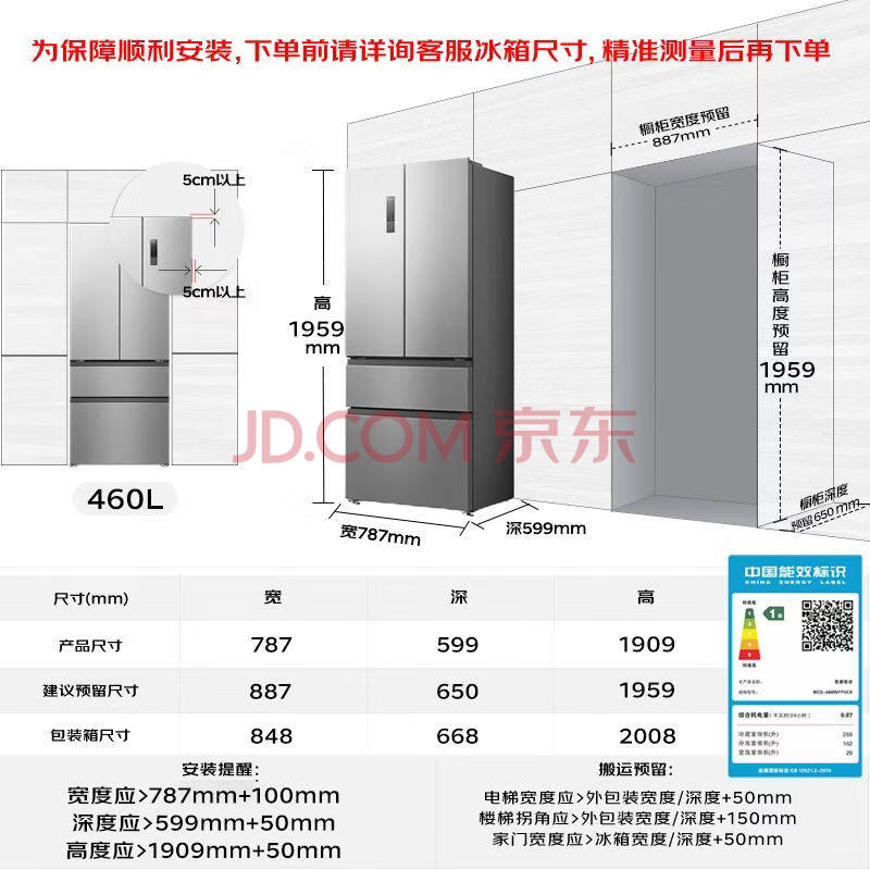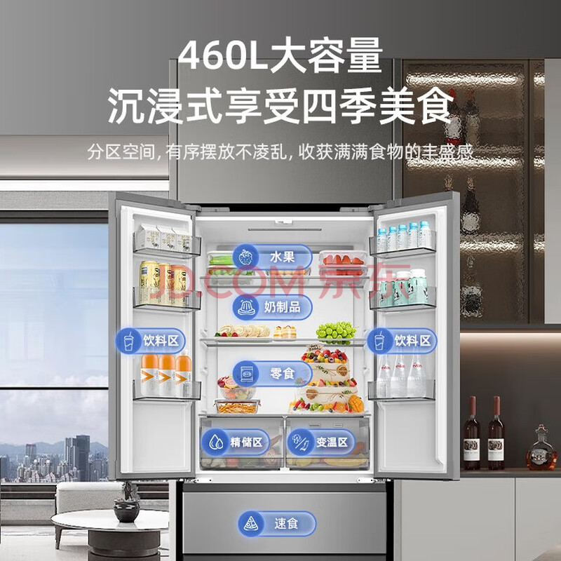 商品相册:美菱冰箱460升法式四开多门收纳师59.9cm超薄嵌入一级能效风冷无霜BCD-460WFP9CX第