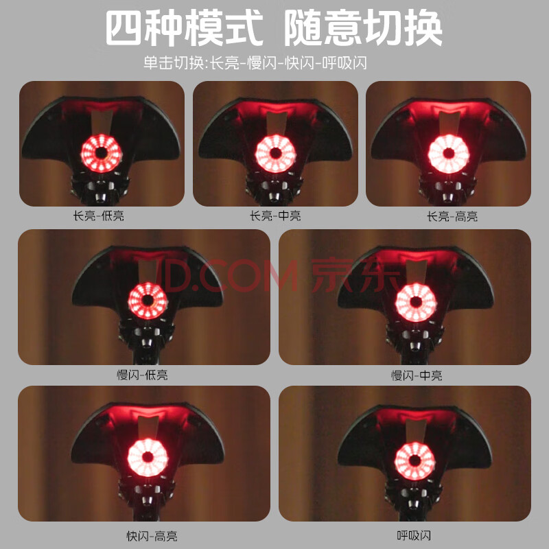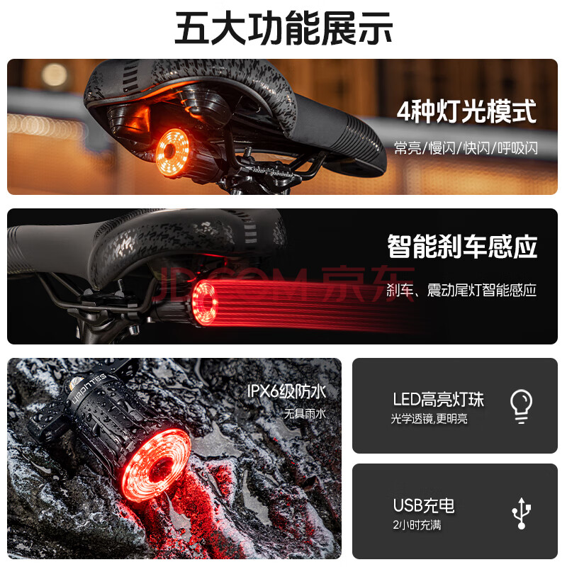 商品相册:yaphtes自行车尾灯智能感应刹车灯山地车充电公路车高亮安全灯 坐杆款第