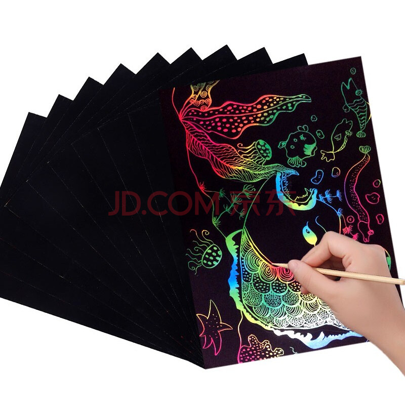 商品相册:惠朗(huilang)16k儿童炫彩刮画纸10张 小学生刮刮画刮刮纸 附赠刮画笔模具 7096第