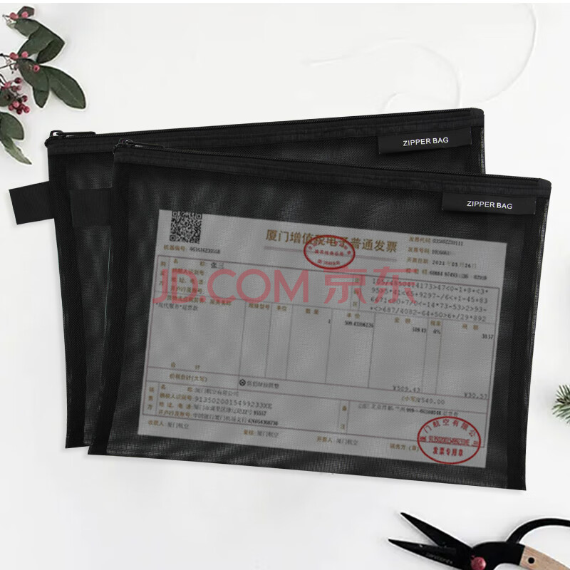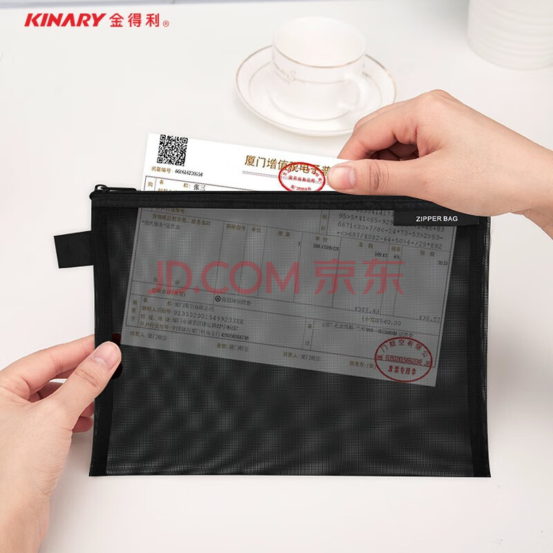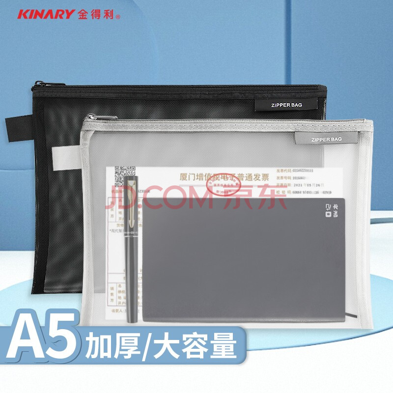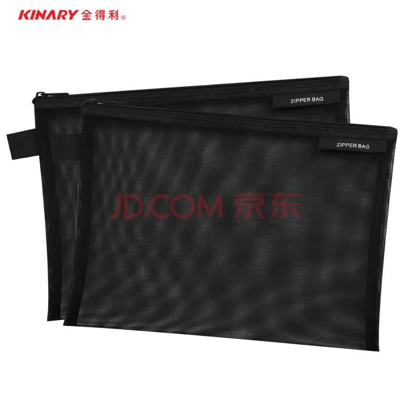 商品相册:金得利2个装A5尼龙网纱拉链袋简约透明文件袋资料袋学生考试用笔袋文具收纳袋黑色FB8810第