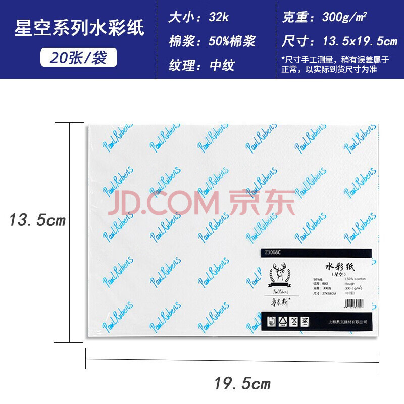 商品相册:鲁本斯(PaulRubens)星空水彩纸加厚32K中粗纹300g棉浆纸素描纸学生初学美术绘画纸20张/包0111090第