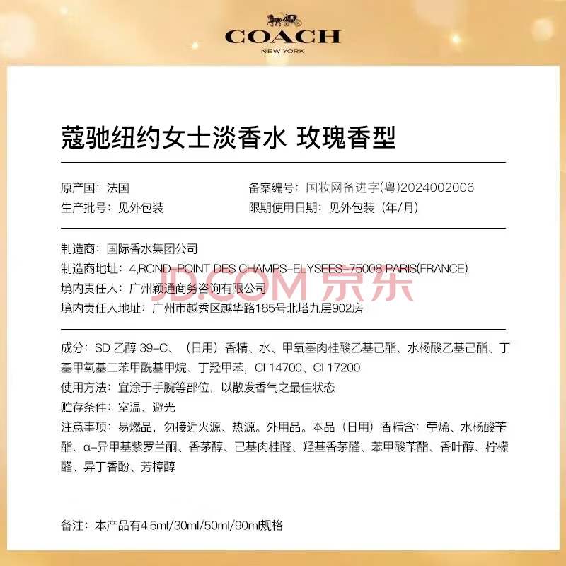 商品相册:蔻驰(COACH)纽约女士浓香水90ml 节日生日礼物女生老婆香氛礼物第
