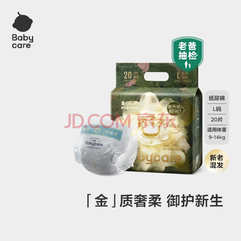 商品相册:babycare金山茶花婴儿纸尿裤mini装L20片(9-14kg)尿不湿透气超薄透气第