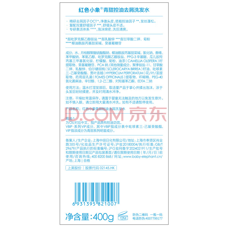 商品相册:红色小象0U青少年控油去屑蓬松止痒洗发水400g第