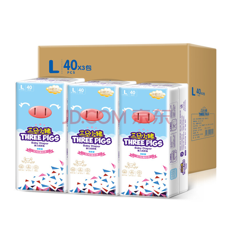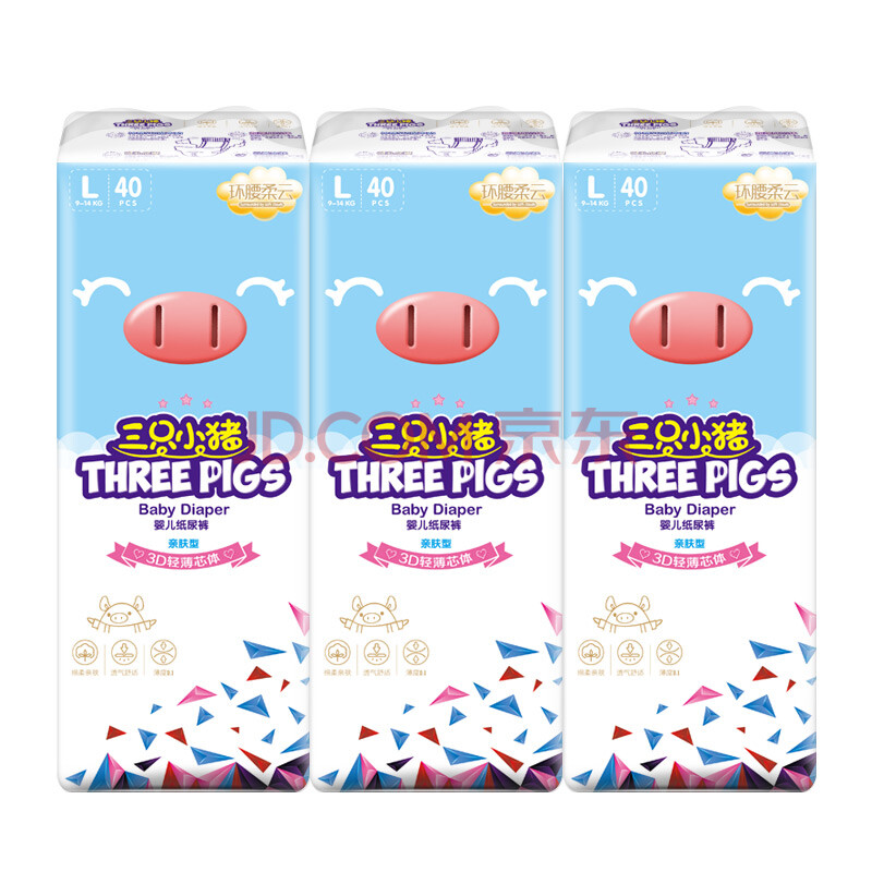 商品相册:三只小猪3D轻薄纸尿裤L码120片 超薄透气婴儿尿不湿尿片尿布(9-14KG)第