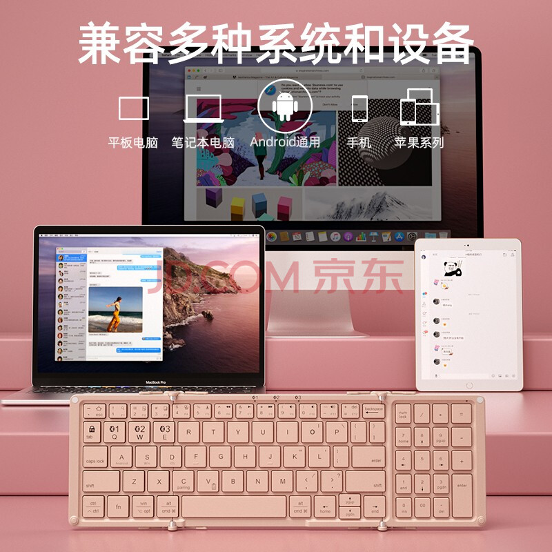 商品相册:B.O.W航世 HB166 可折叠无线蓝牙键盘79键 ipad平板手机电脑通用办公小键盘 粉色第