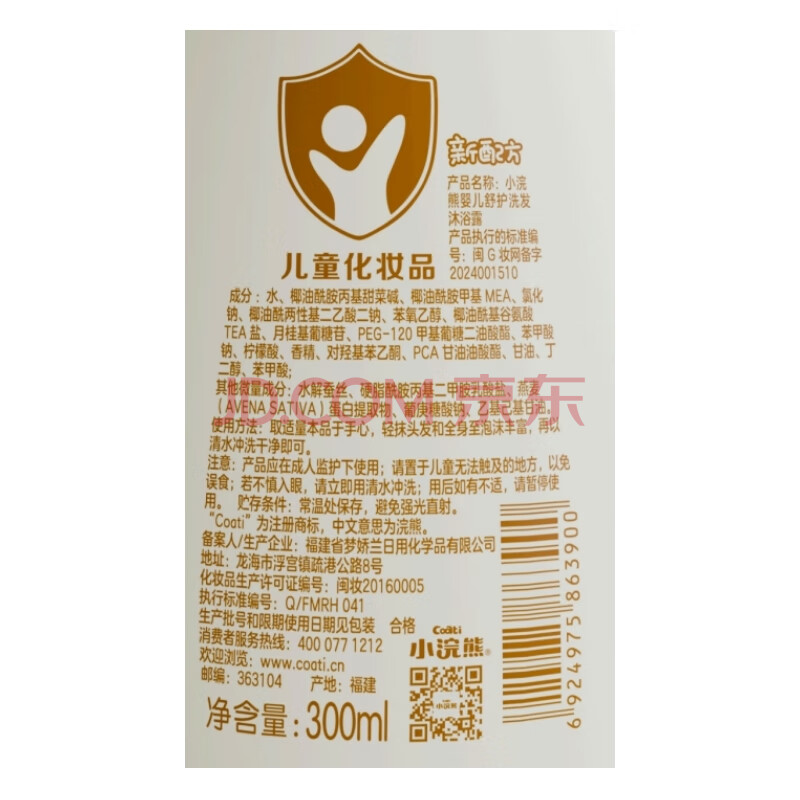 商品相册:小浣熊 婴儿洗发沐浴二合一 洗发水 沐浴露 宝宝儿童沐浴液 300ml第