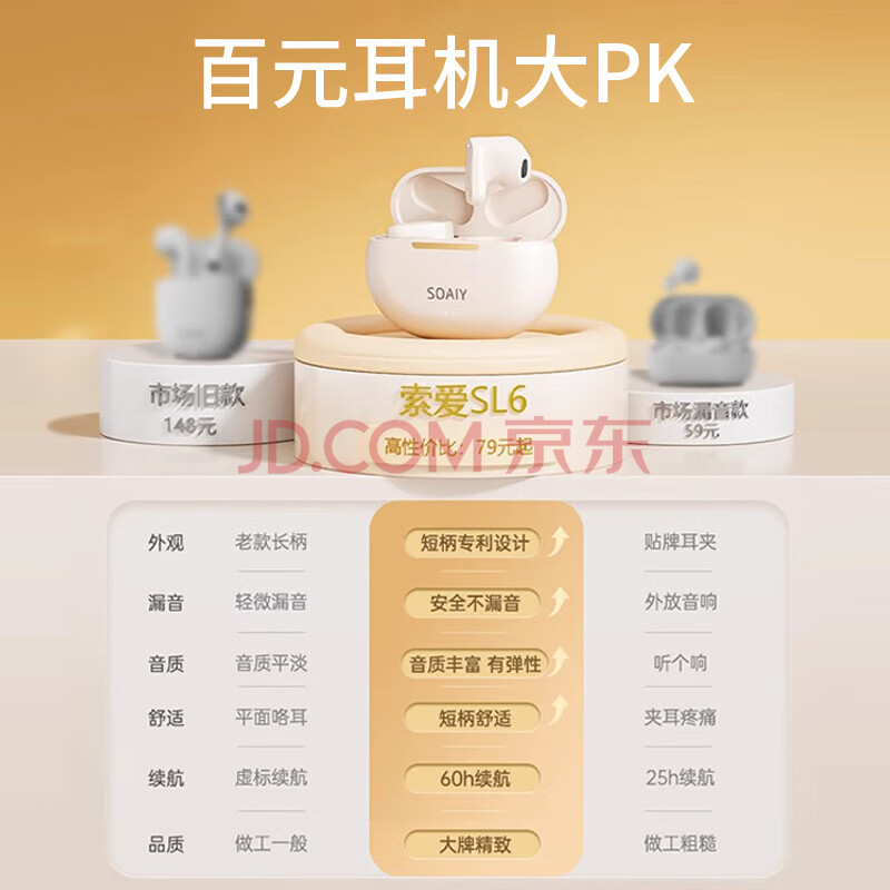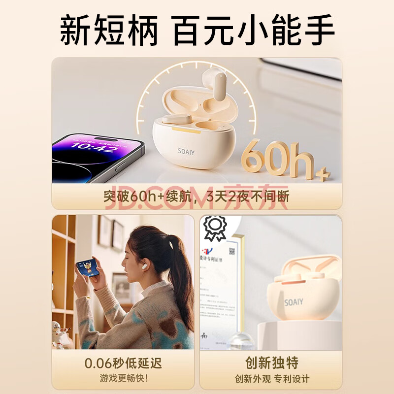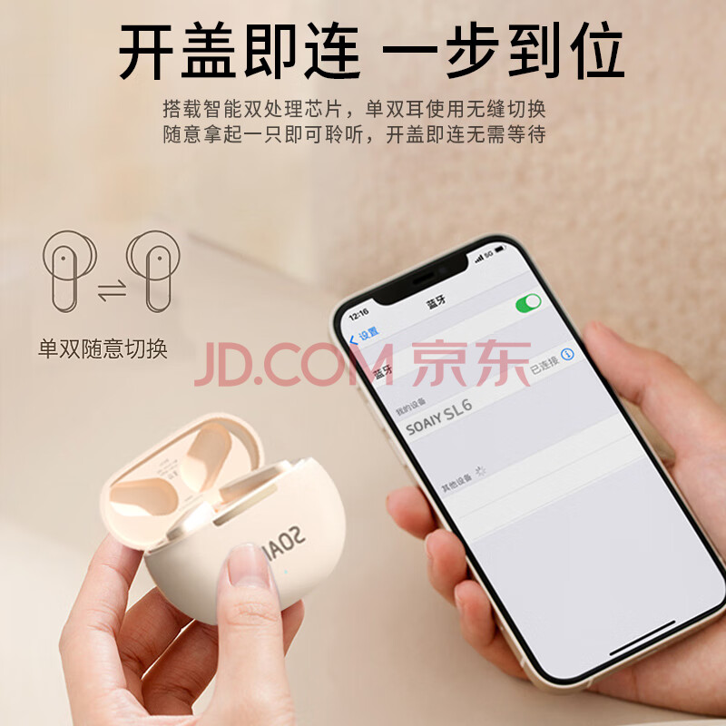 商品相册:索爱(soaiy)SL6真无线蓝牙耳机运动商务游戏长续航半入耳式蓝牙耳机适用于苹果安卓通用蓝牙耳机 油彩白第1张/共7