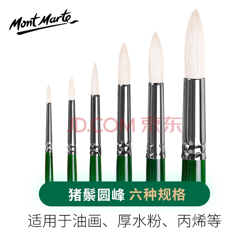 商品相册:蒙玛特(MontMarte)水彩笔6支猪鬃圆锋水彩画笔水粉笔颜料画画笔学生练习儿童绘画画笔套装V第