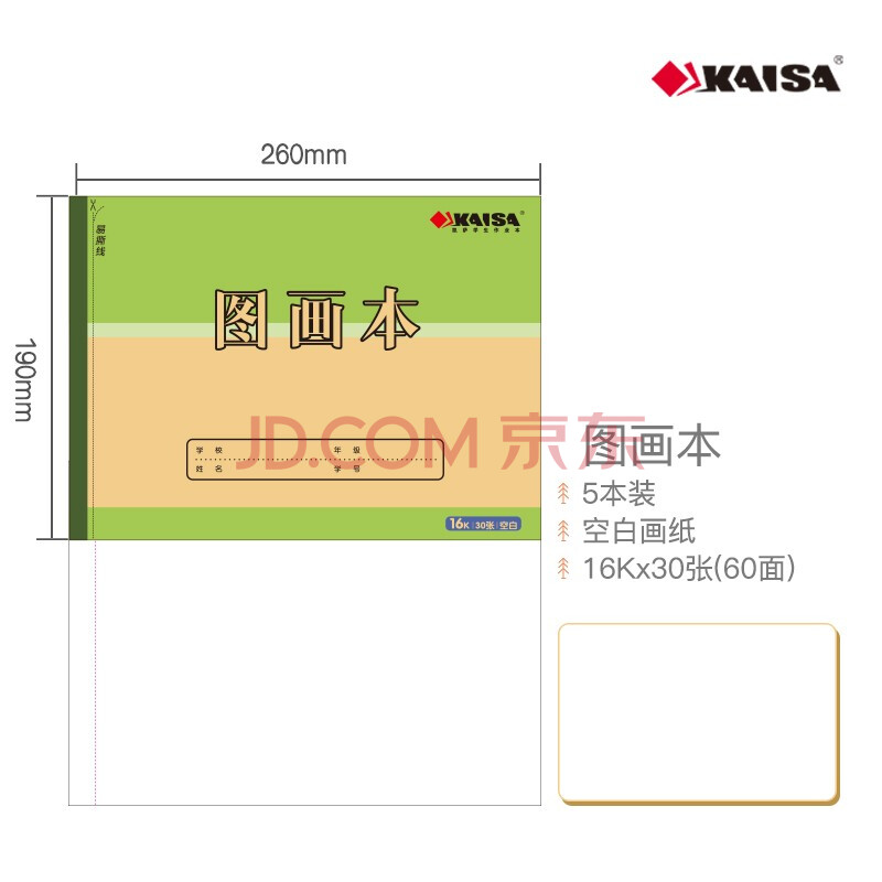 商品相册:凯萨(KAISA)16K图画本加厚30张儿童涂鸦绘画本小学生文具幼儿园美术画画本5本装第
