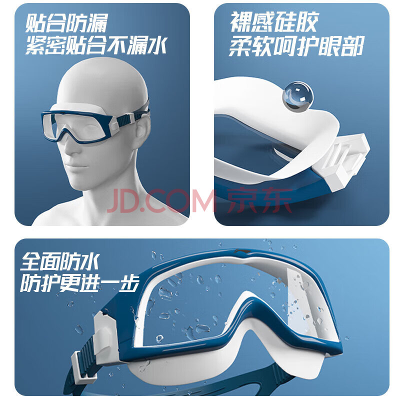商品相册:李宁(LI-NING)泳镜高清防雾防水大框游泳眼镜成人男女潜水镜271-4银白近视150度第