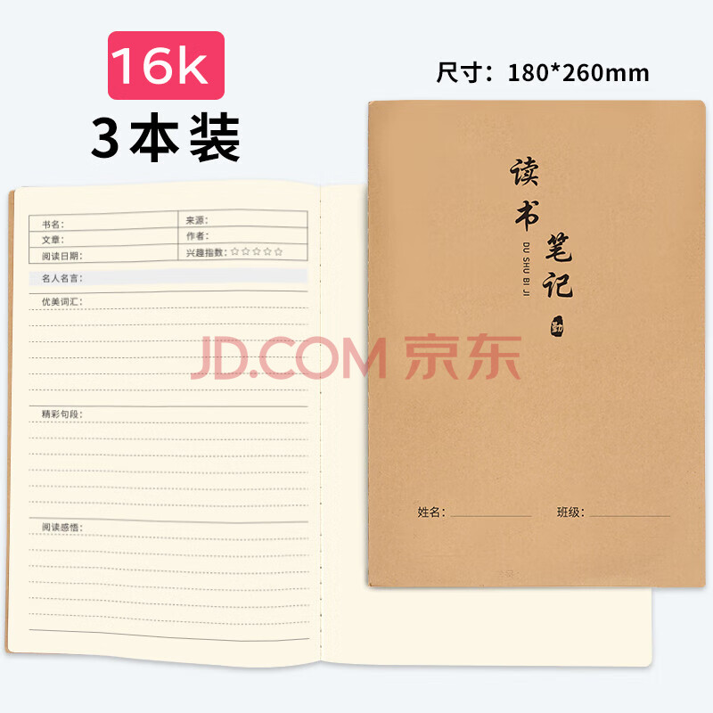 商品相册:西玛(SIMAA)16k学生读书笔记本阅读摘抄笔记本读后感好词好句记事记录牛皮作业本子 36张3本装 XYDB5第
