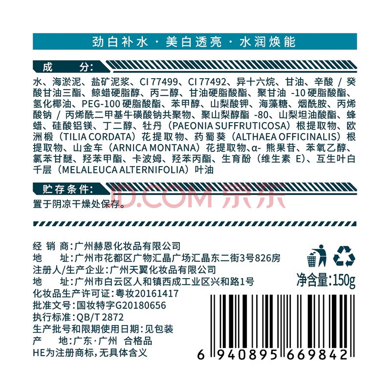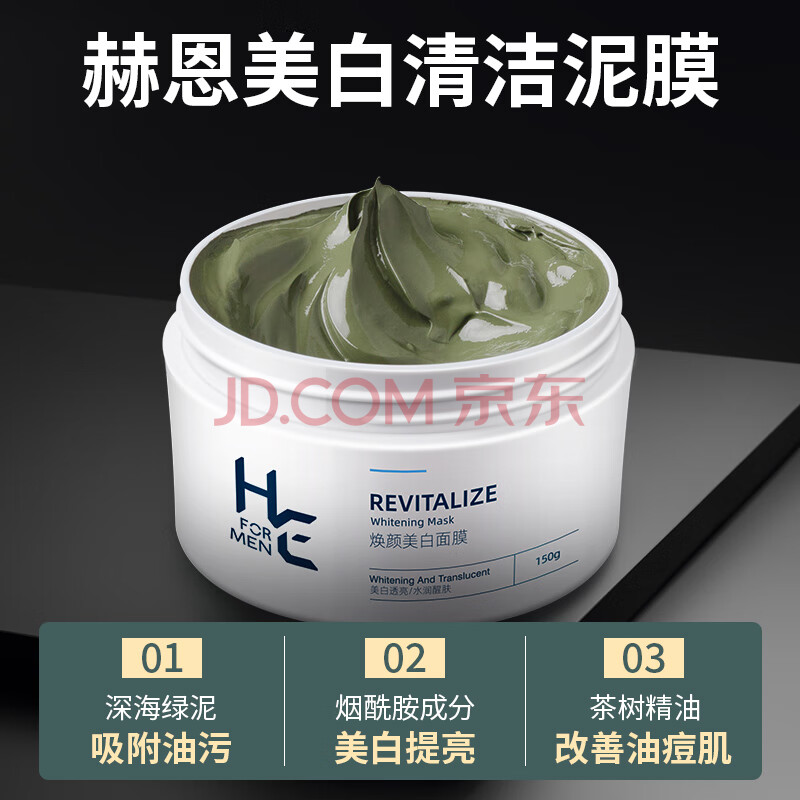 商品相册:赫恩(H&E)冰海泥清洁美白泥膜150g男女通用清洁面膜吸附油污清洁毛孔第1张/共7