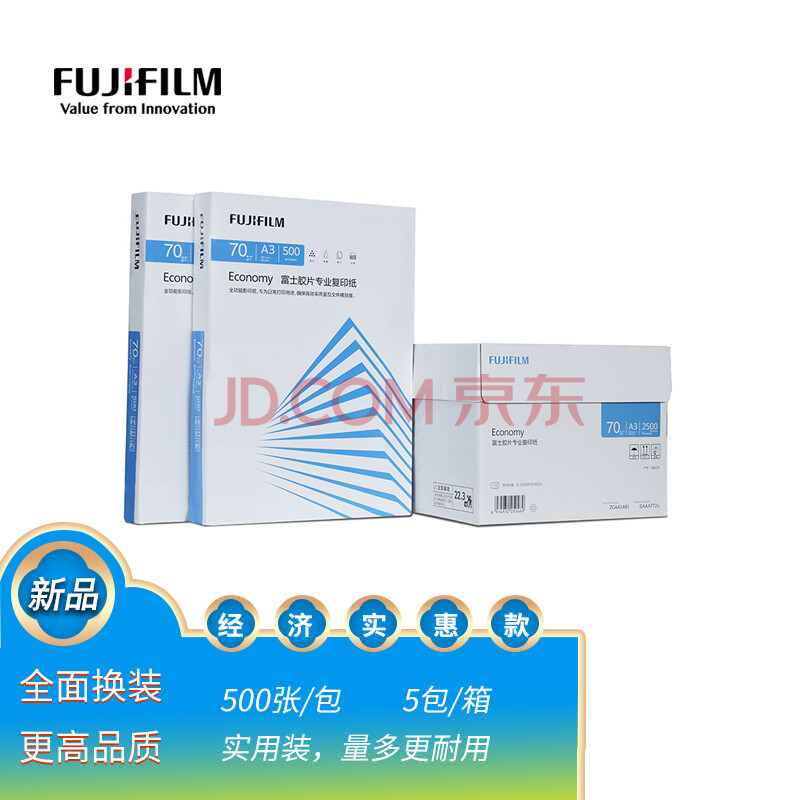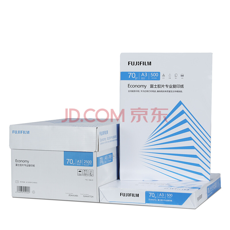 商品相册:富士胶片FUJIFILMEconomy 专业70g A3复印纸 500张/包 5包/箱(2500张) 打印纸70g a3 整箱第