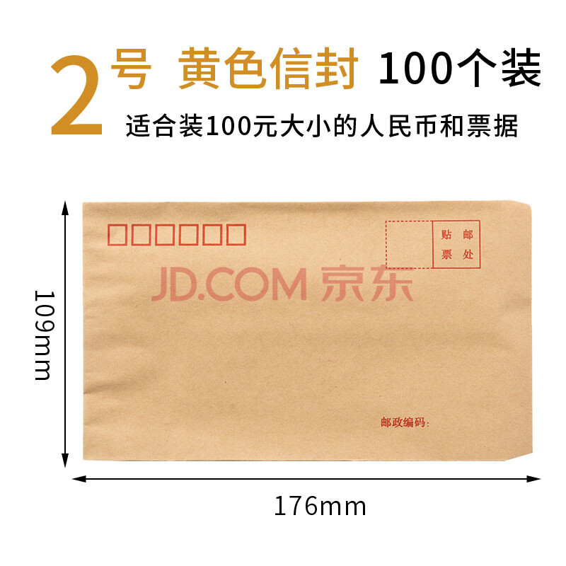 商品相册:递乐 2号牛皮纸信封袋定制票据工资袋 牛皮纸邮局标准信封100个/包 4602第