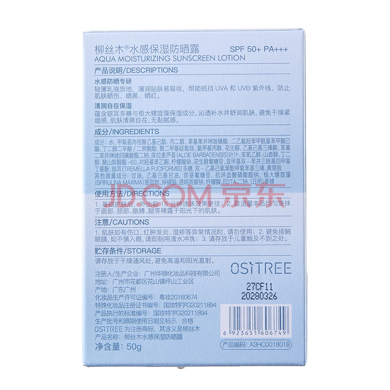 商品相册:柳丝木(Ositree)雪糕防晒霜高倍spf50+户外面部防紫外线礼物 蓝U盾50g第