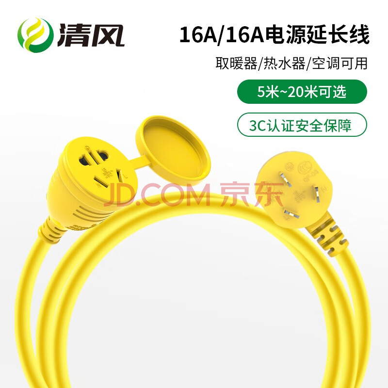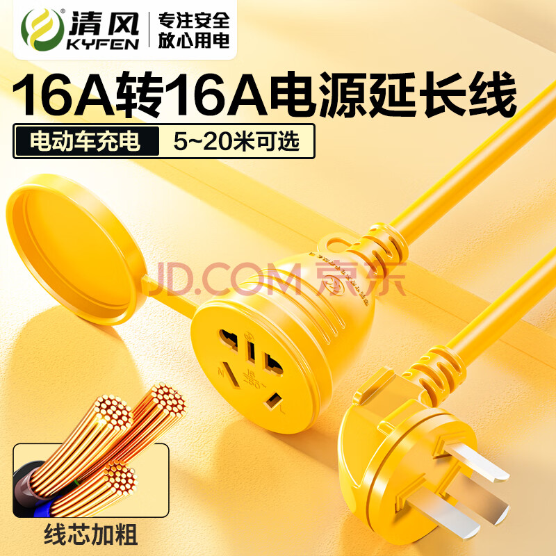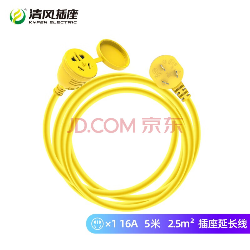 商品相册:清风(kyfen)充电延长线/插座/插线板/插排/排插/接线板/拖线板 防冻耐寒防水加粗 1.5平线径 16A转16A 全长5米第