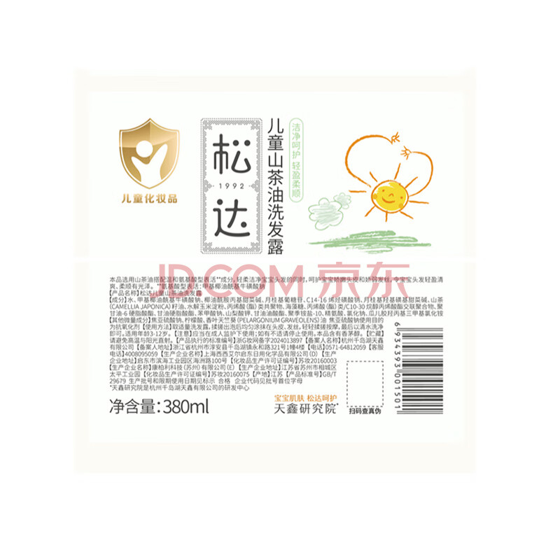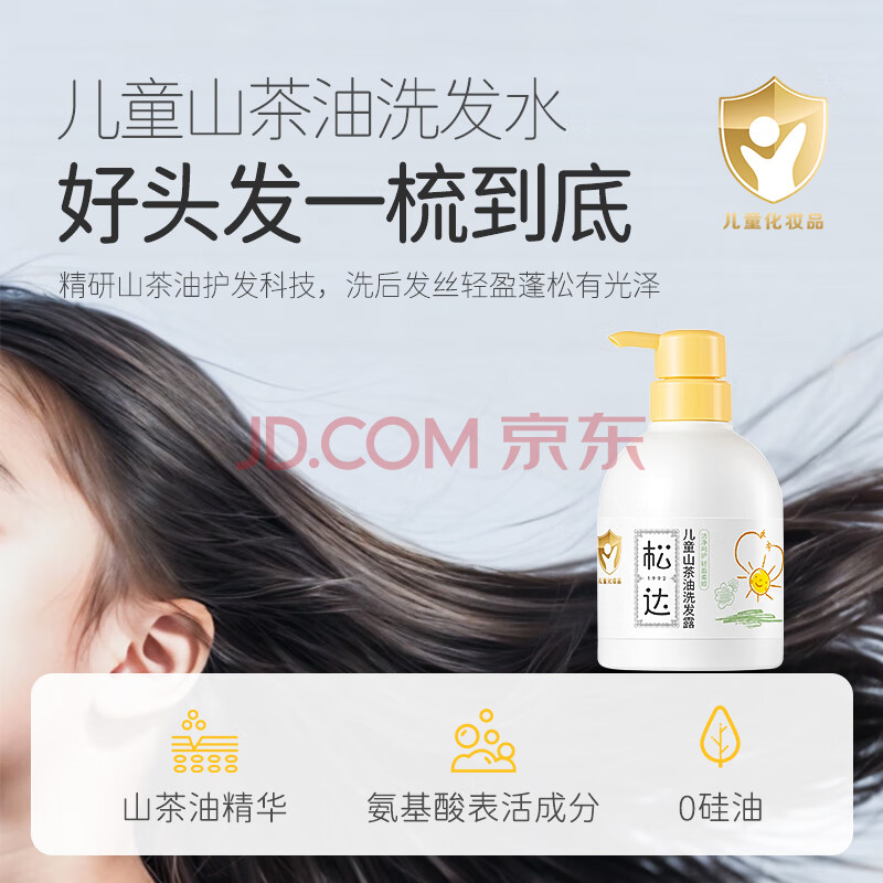 商品相册:松达儿童洗发水3-6-12-16岁宝宝青少年山茶油洗发露无硅油380ml第