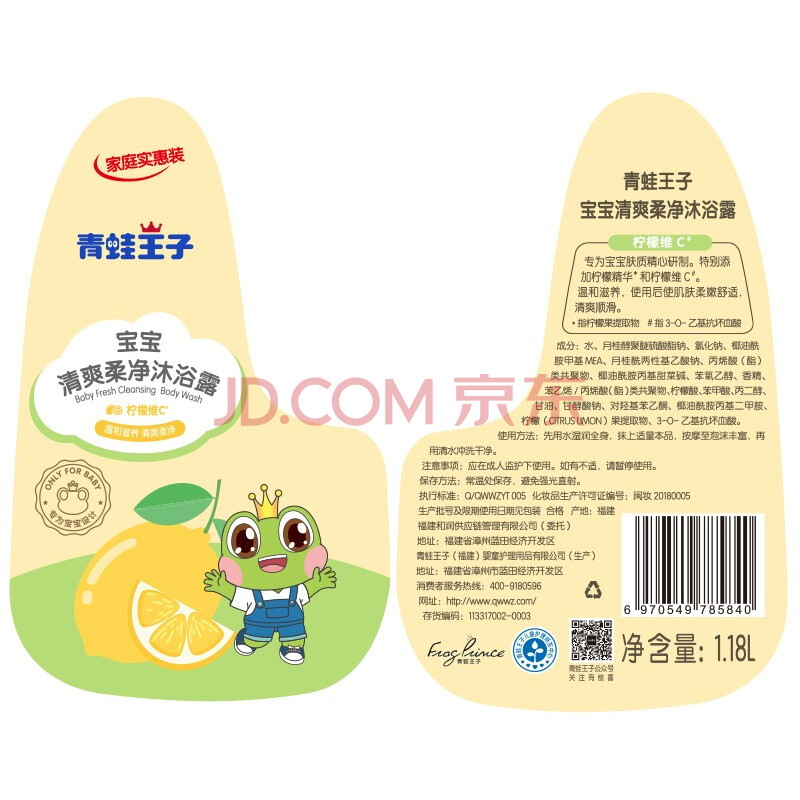 商品相册:青蛙王子儿童沐浴露1.18L 温和无刺激 婴幼儿宝宝可用 天然柠檬维C精华第