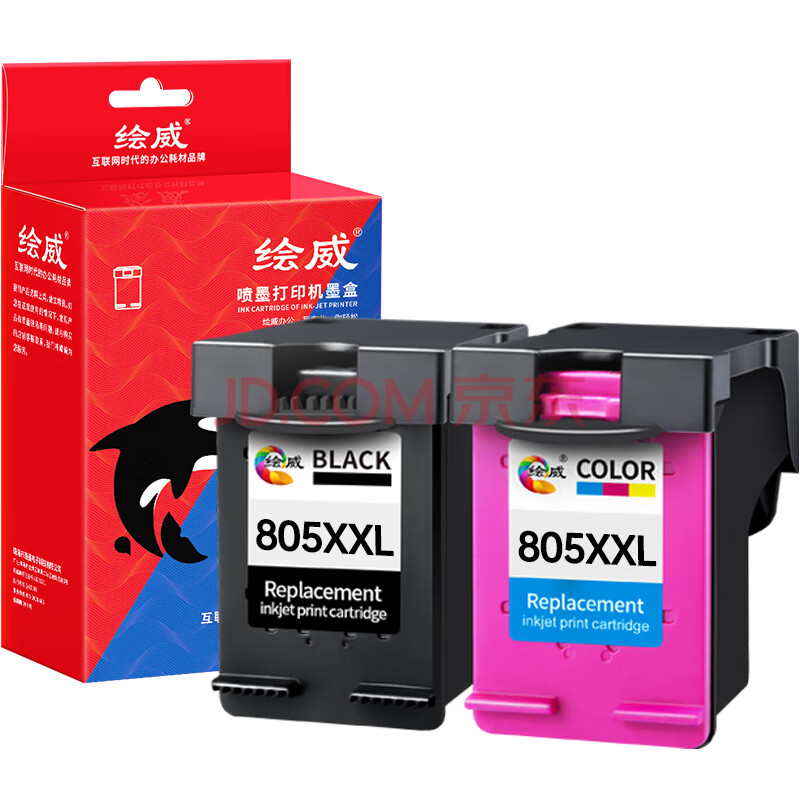 商品相册:绘威惠普805墨盒黑彩色可加墨 适用惠普HP 2720 2721 2723 1210 1212 2330 2332 2722 2729 2700打印机墨盒第