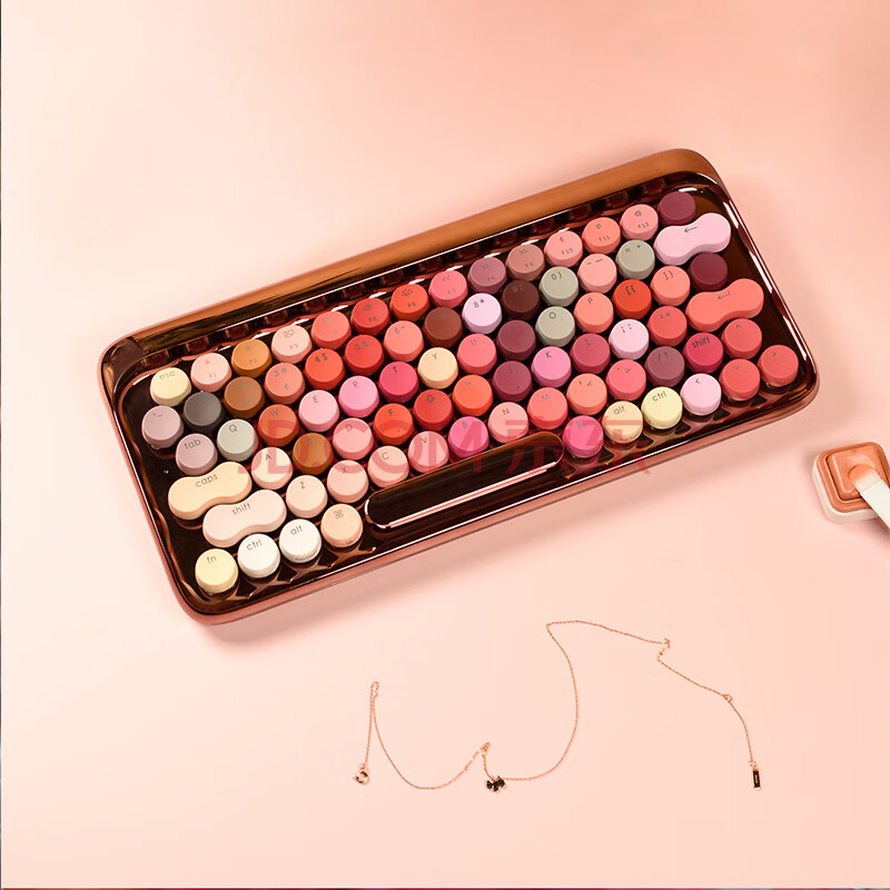 商品相册:洛斐(LOFREE)绽放系列复古DOT圆点无线蓝牙机械键盘 玫瑰金版第
