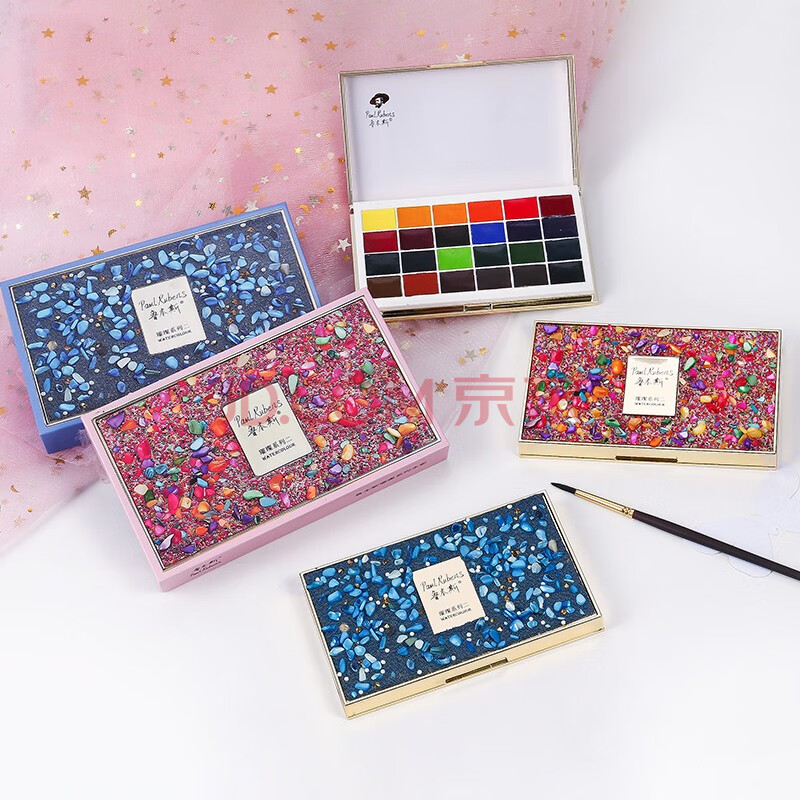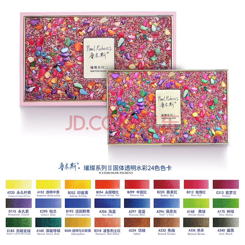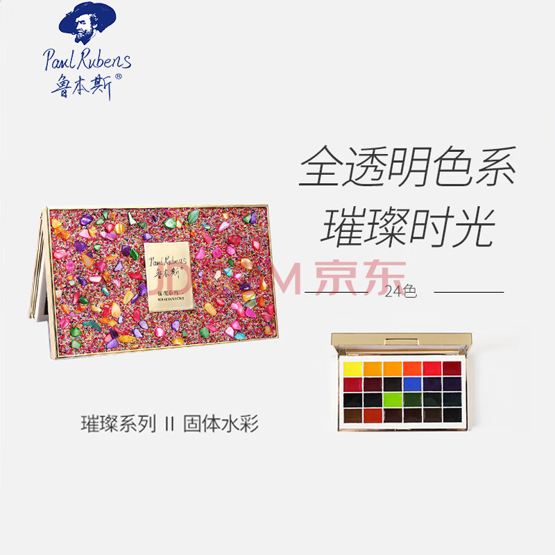 商品相册:鲁本斯璀璨系列Ⅱ固体水彩颜料套装 24色艺术家级便携水粉色彩颜料美术工具-宝石粉010915001第