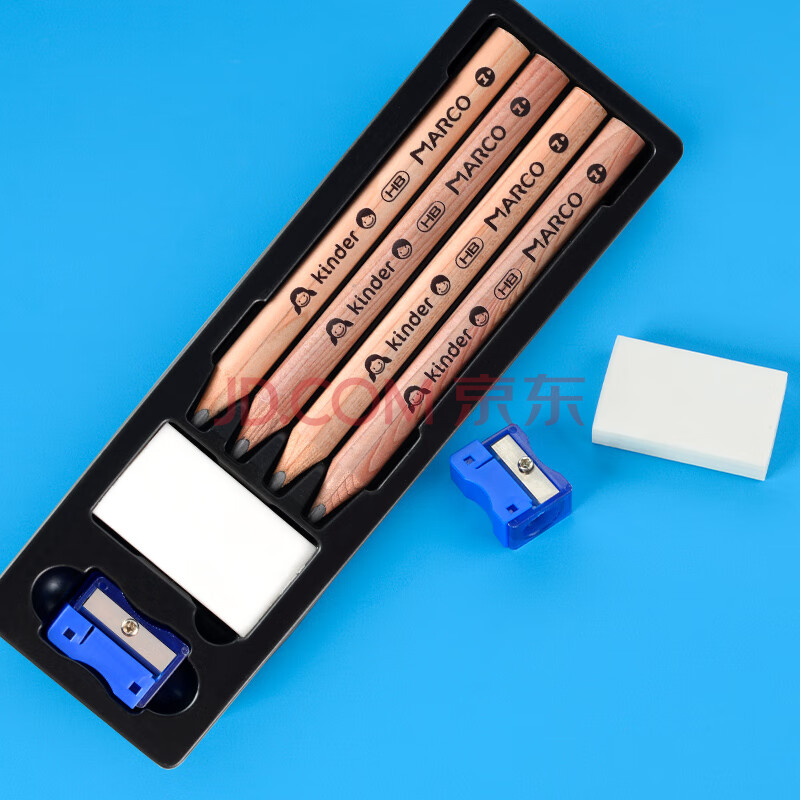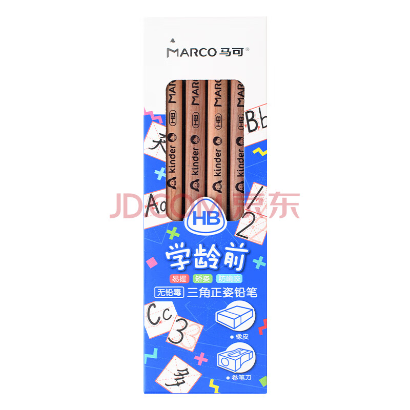 商品相册:马可(MARCO)正姿雪松木铅笔HB 学龄前加粗三角幼儿易抓握书写铅笔4支装(配橡皮削笔器)马克笔绘画第