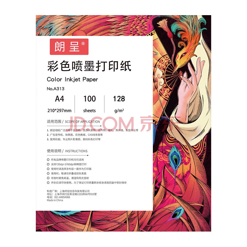 商品相册:朗呈 喷墨打印纸A4彩喷纸彩色喷墨打印纸彩喷纸哑光涂层纸高级打印纸128g 100张/包第
