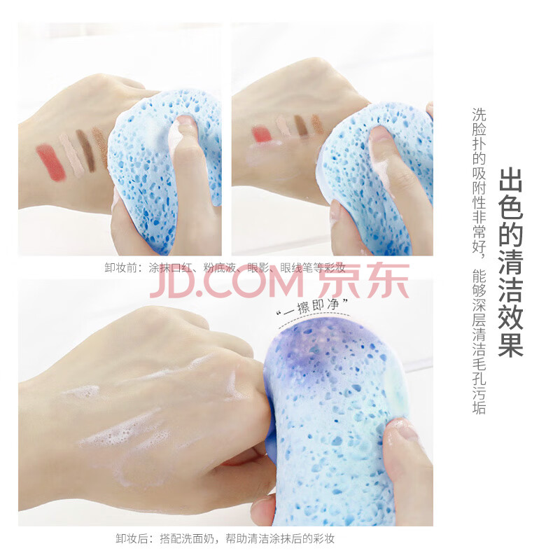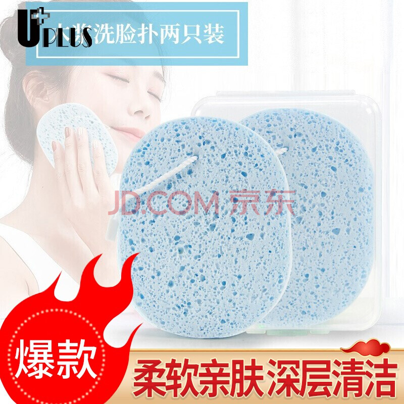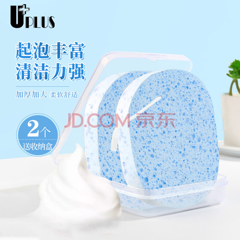 商品相册:优家(UPLUS)加厚加大蚕网木浆洗脸扑洁面扑洗脸棉2个含收纳盒 洗脸海绵第