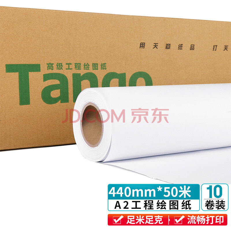 商品相册:天章 (TANGO)A2 80g 绘图纸 工程纸 卷式加厚复印纸 打印纸 数码纸 机械设计CAD制图 2寸芯 10卷(440mm*50m)第