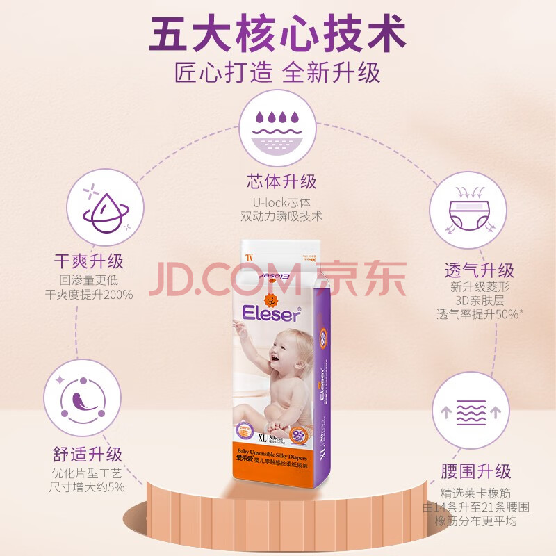 商品相册:爱乐爱Eleser零触感纸尿裤XL30片(12-17kg) 婴儿尿不湿尿片裸感超薄透气第