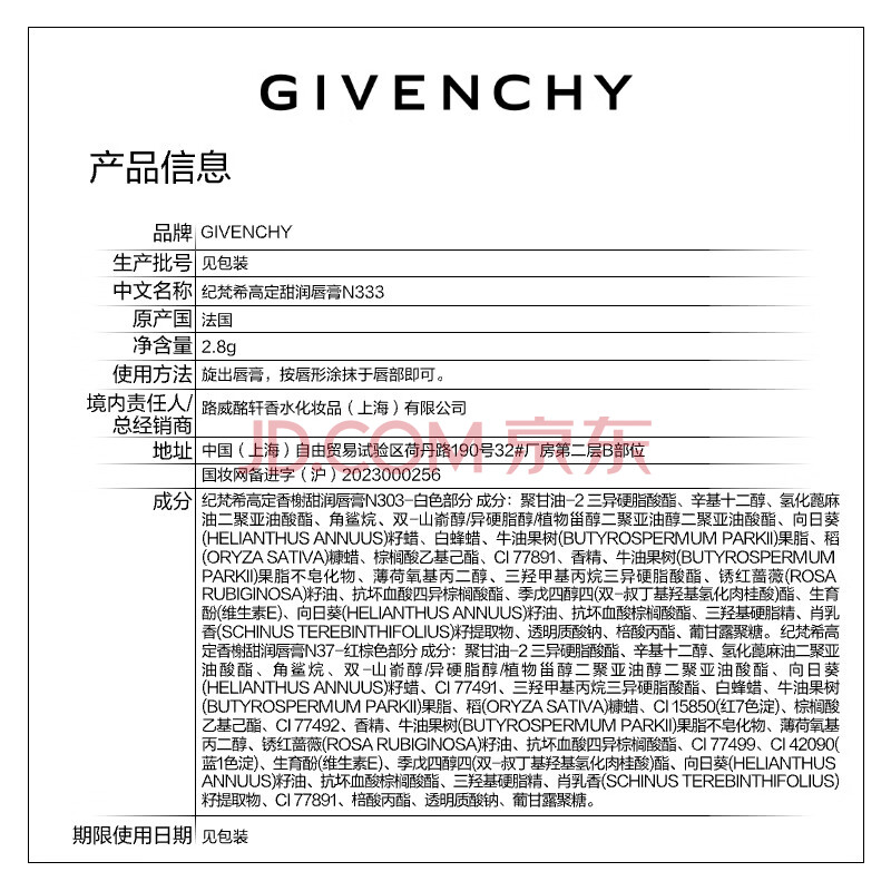 商品相册:纪梵希(Givenchy)棒棒糖唇膏N333冰糖山楂色口红润唇膏 化妆品 生日礼物送女生闺蜜第