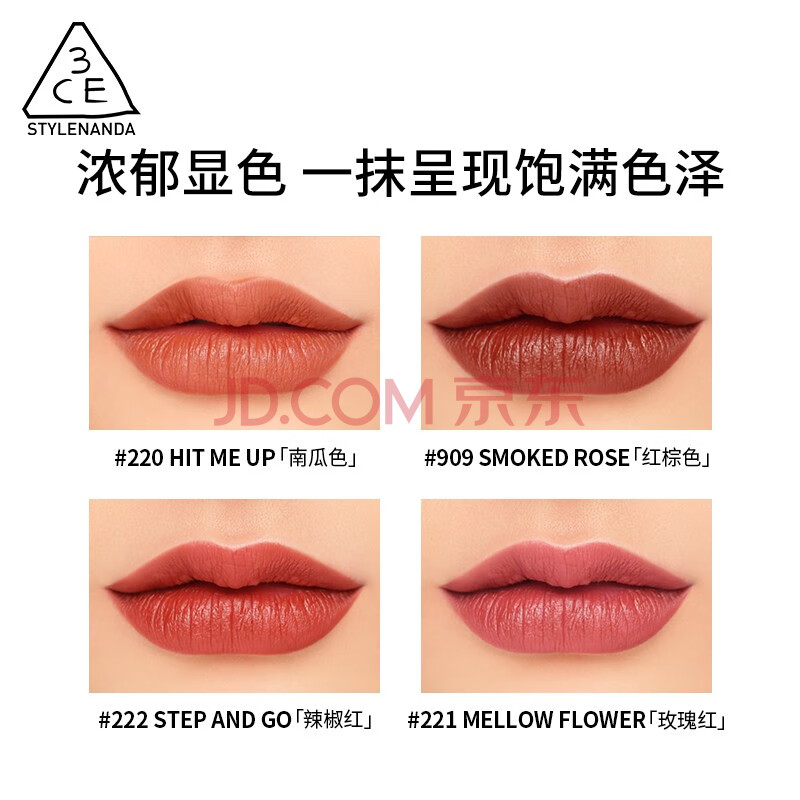 商品相册:3ce哑光口红玫瑰红色221MELLOWFLOWER唇膏唇蜜镜面生日礼物送女友第