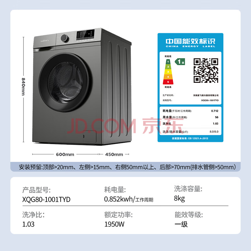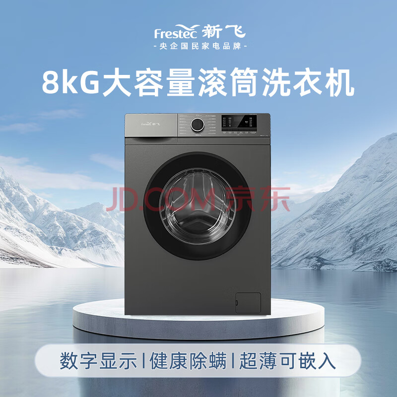 商品相册:新飞(Frestec)8公斤滚筒洗衣机全自动 大容量 欧标 健康除螨洗省电节能 XQG80-1001TYD 送装一体第