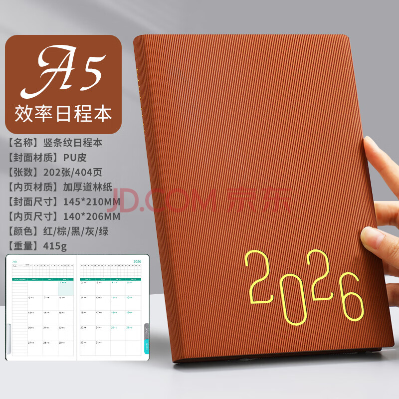 商品相册:法拉蒙 2026年时间管理效率手册大学生365天一天一页日程本笔记本本子文具计划表工作备忘计划本 棕色第