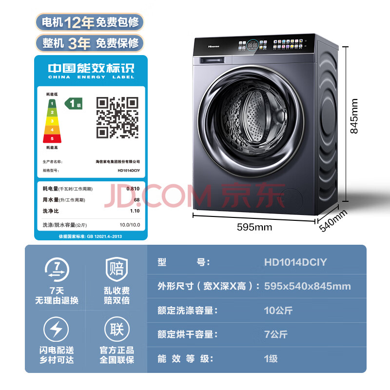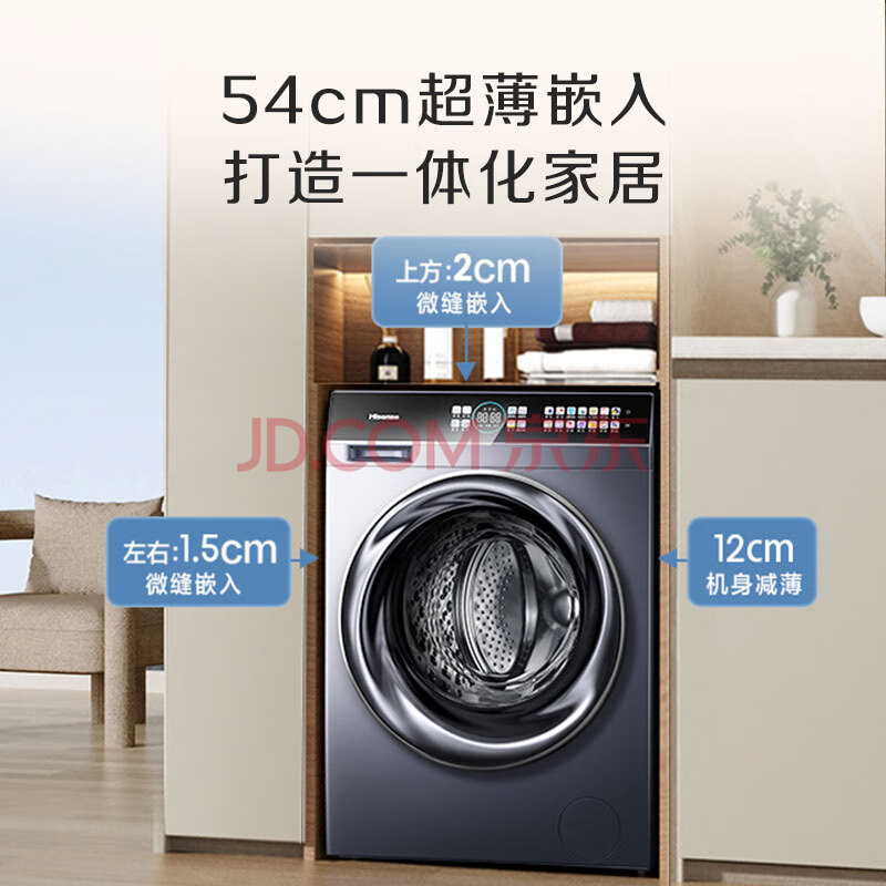 商品相册:海信(Hisense)滚筒洗衣机全自动 10公斤洗烘一体 直驱变频 超薄彩屏智能投放 离子除菌HD1014DCIY第