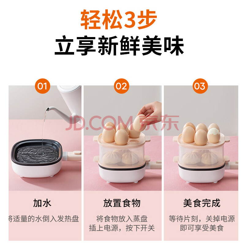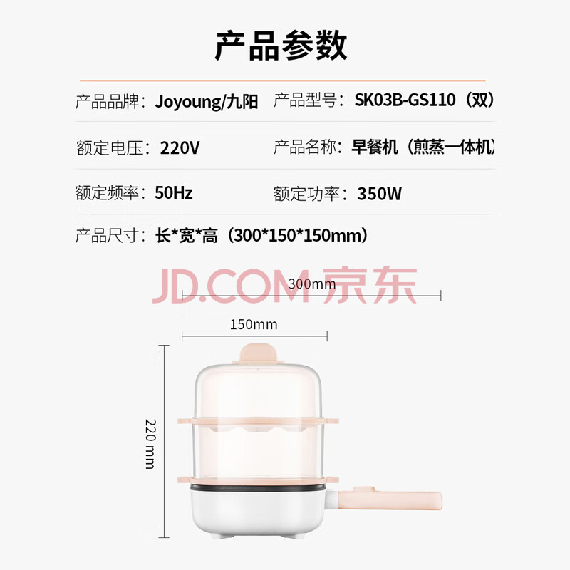 商品相册:九阳(Joyoung)煮蛋器多功能智能早餐蒸煎一体煮蛋器 SK03B-GS110(双) 【企业采购】 【支持一件代发】第