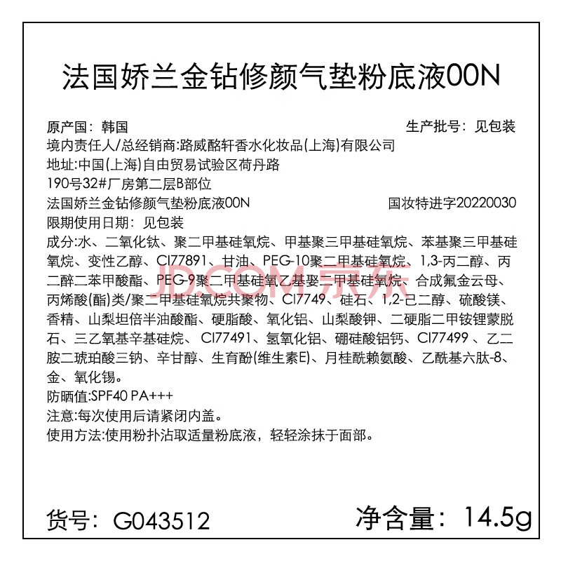 商品相册:娇兰(Guerlain)金钻修颜气垫粉底液00N防晒遮瑕提亮持妆化妆品生日礼物送女友第