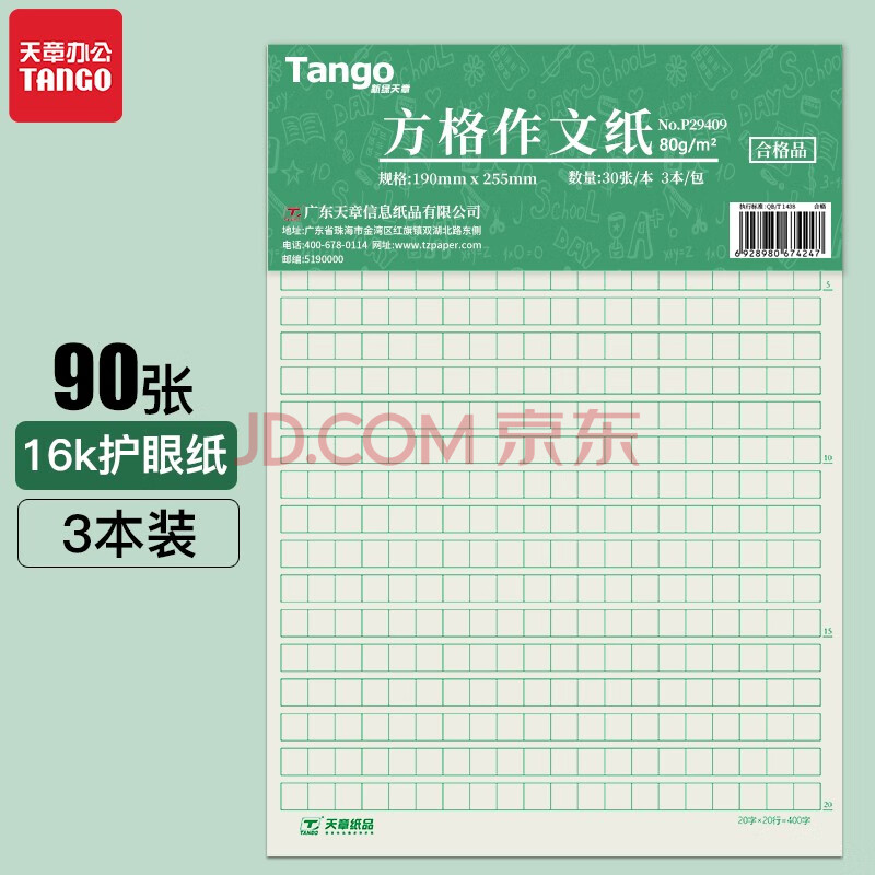 商品相册:天章(TANGO)16K方格语文作文纸绿色护眼作文纸400字学生作文稿纸信纸 加厚学生作业 30张 3本高中生学习神器第