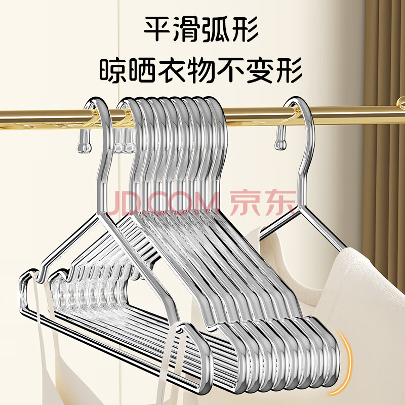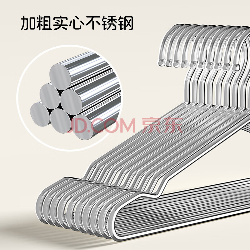 商品相册:晟旎尚品实心不锈钢衣架加粗加大晾晒衣架子无痕衣服挂架撑子40cm10只装第