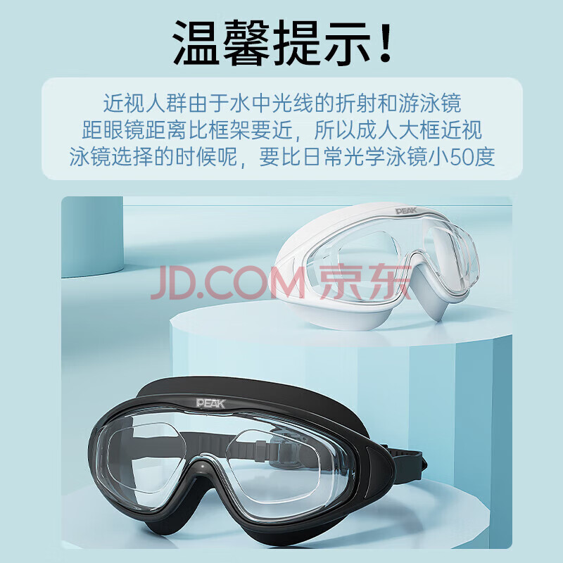 商品相册:匹克成人游泳镜男女高清防雾大框一体专业潜水游泳眼镜近视200度黑色第