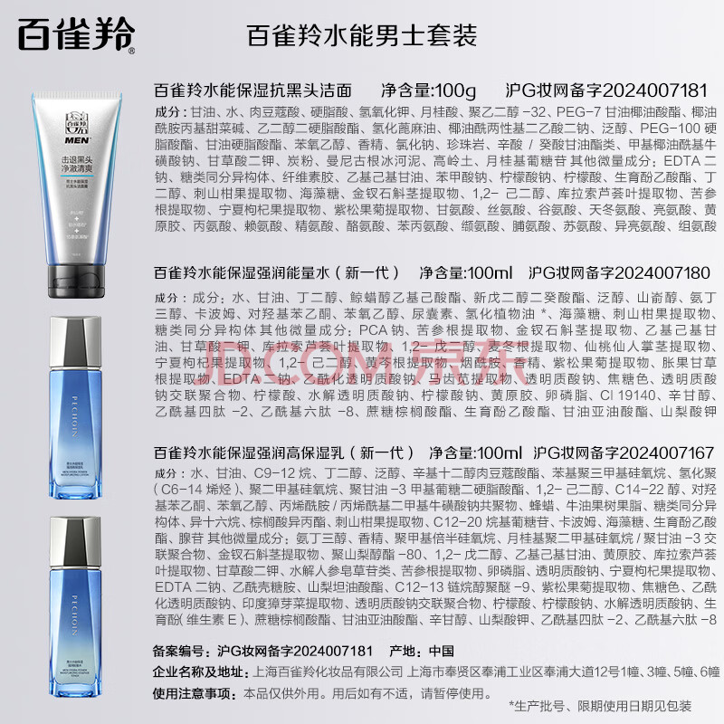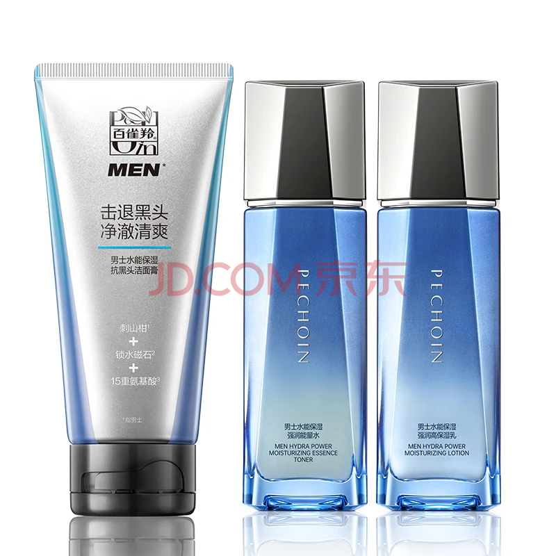 商品相册:百雀羚男士护肤品套装水能保湿补水洁水乳3件控油清洁礼盒装生日礼物第