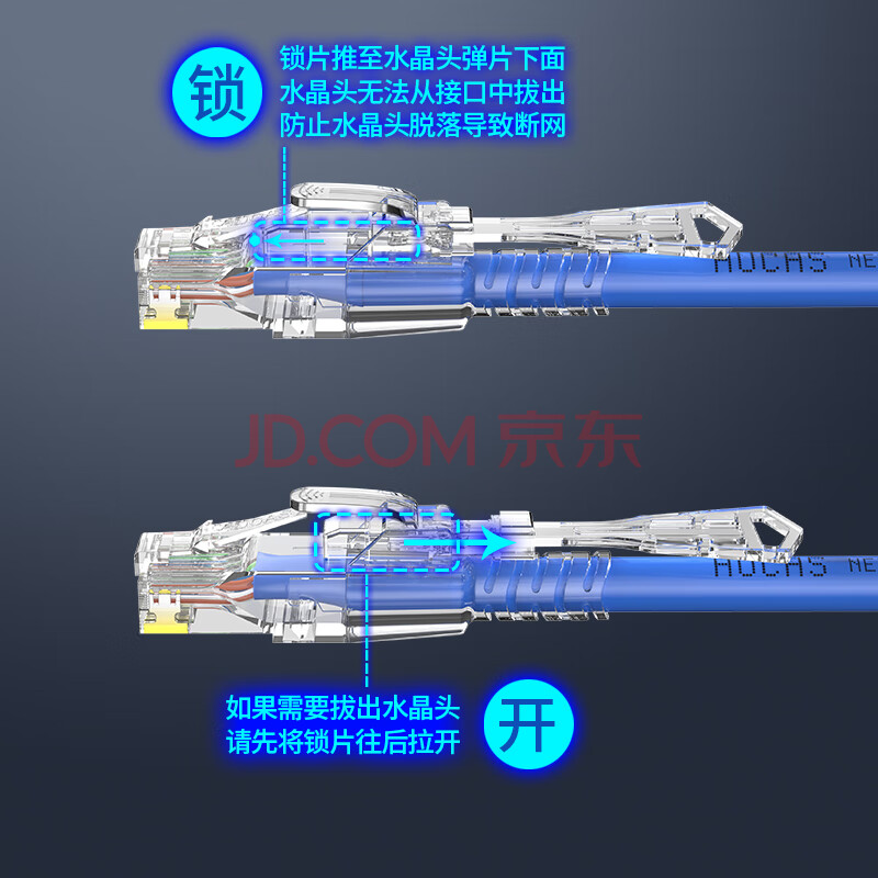 商品相册:奥卡斯(AUCAS)超五类防拔插带锁式水晶头 安全锁扣保护数据防盗 RJ45网线连接器8P8C镀金连接头 10个ACRJ57UP第