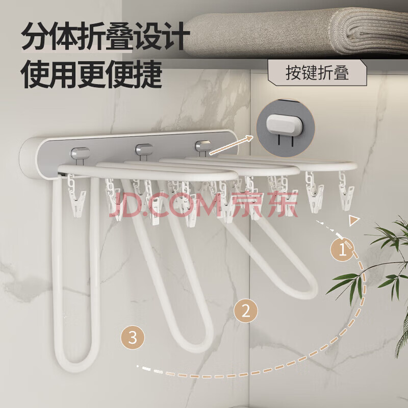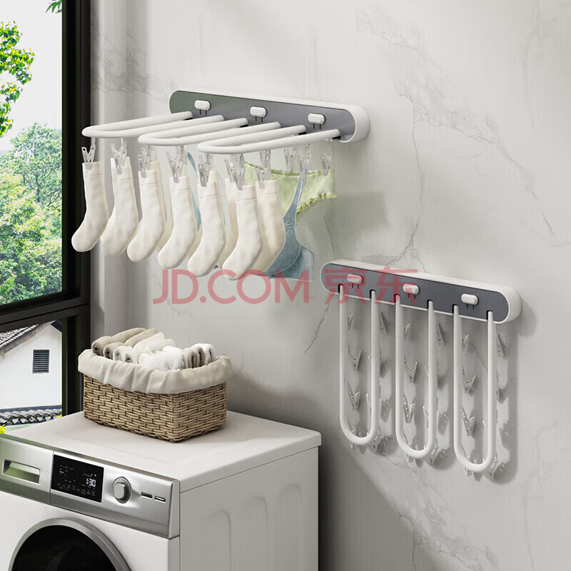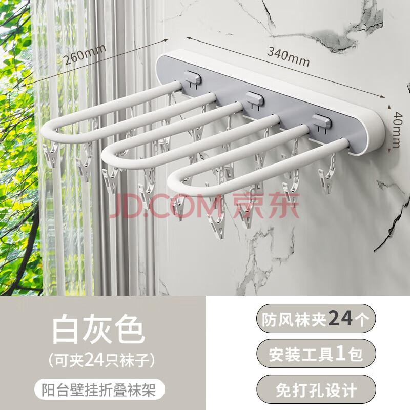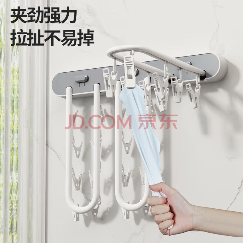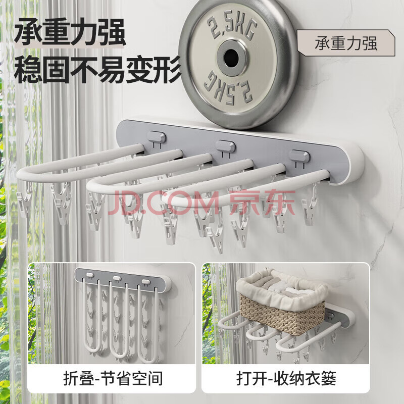 商品相册:妙美 折叠衣服袜子收纳架免打孔无痕晾晒夹阳台墙面壁挂式晾晒架第