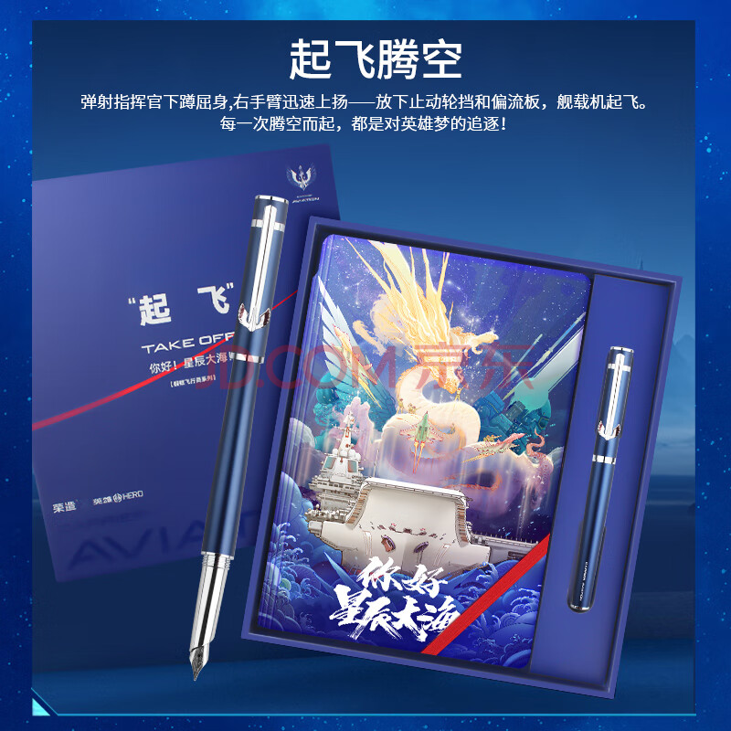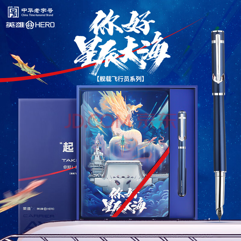 商品相册:英雄(HERO)钢笔 礼盒英雄×山东舰H605D舰载飞行联名款航母文创教师礼物笔记本礼盒蓝色第