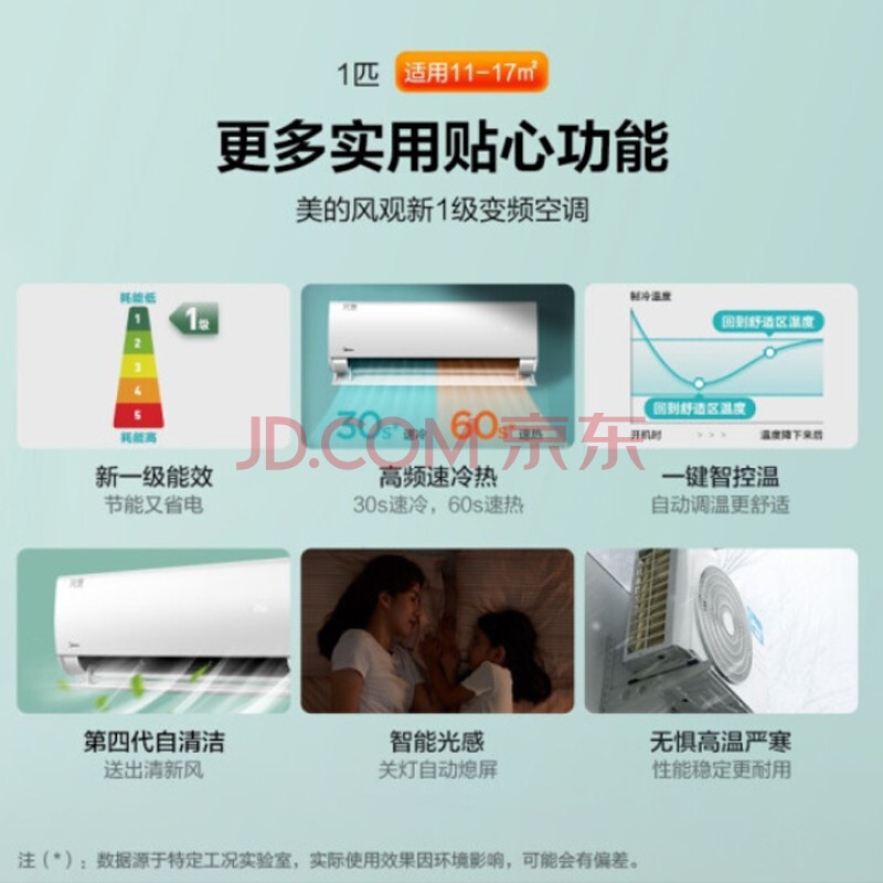 商品相册:美的 Midea新一级 风观 智能变频加大导风板 京品家电1.5匹冷暖壁挂式空调挂机 KFR-35GW/N8XHA1第