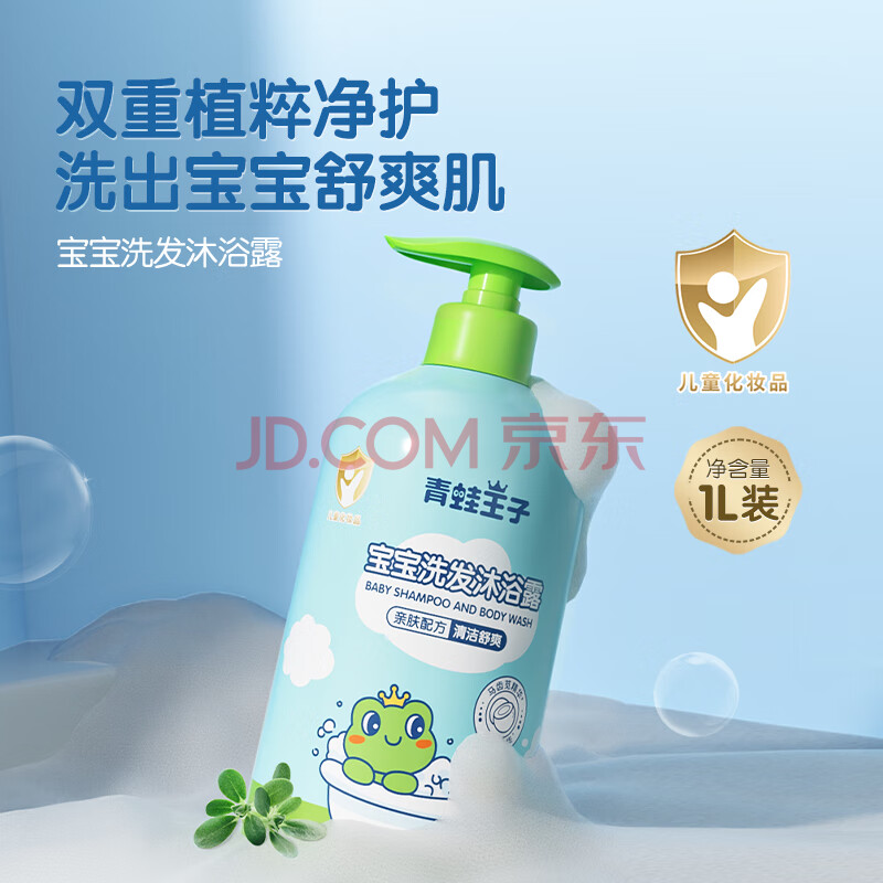 商品相册:青蛙王子儿童洗沐二合一1L*2 双重植萃精华 温和清洁宝宝专研洗发水沐浴露第