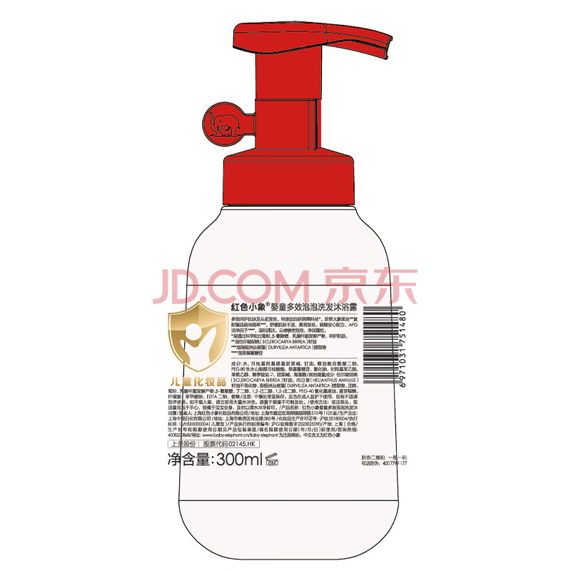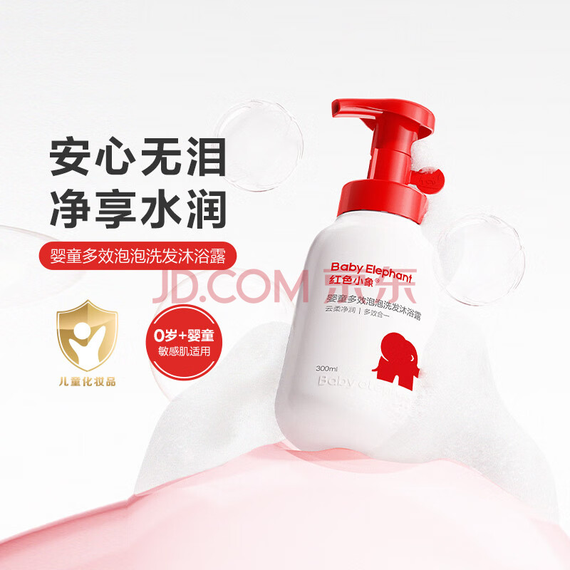 商品相册:红色小象婴童多效泡泡洗发沐浴露300ml 儿童洗沐二合一宝宝无泪护发保湿第1张/共4